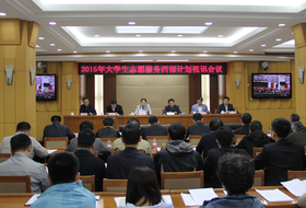 4月14日,共青团中央、教育部、财政部、人力资源社会保障部联合召开视讯会议,正式启动2015年大学生志愿服务西部计划。团中央书记处书记汪鸿雁、教育部、财政部、人力资源社会保障部等部委有关负责同志出席会议并讲话。各省(区、市)的省级团委、教育、财政、人社部门负责人及西部计划高校、服务县团委、项目办负责人在分会场参加会议。