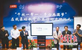 2015年4月29日,北京,“千校一帮一· 手心共圆梦”在线基础教育公益行动启动仪式,参会嘉宾鼓掌祝贺。赵迪摄