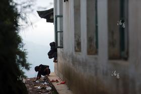 潘祥当要上三个年级的课,没轮到的孩子有时会爬上窗户外玩耍。今年年初,他成为大歹小学三年级老师,不久前,大歹小学原有的一对夫妻老师外出看病,如今,全校88个学生,三个年级他一个人“单挑”。