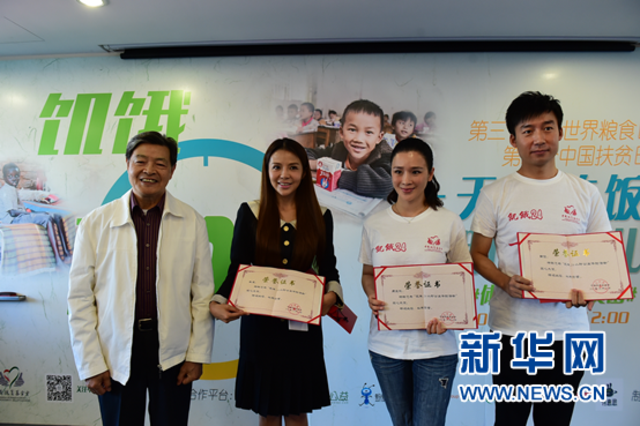 10月12日,饥饿24小时公益体验活动启动仪式在中国扶贫基金会举行。启动仪式上,朱迅、周显欣、田征三位爱心大使宣读了活动倡议,并与中国扶贫基金会副会长江绍高、苏丹驻华大使Mr.Omer Eisa共同为活动启动揭幕。目前,已有近20位明星为本次活动录制视频参与微博互动,近百所高校响应倡议参与体验。