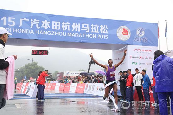 2015杭州马拉松赛在雨中开跑