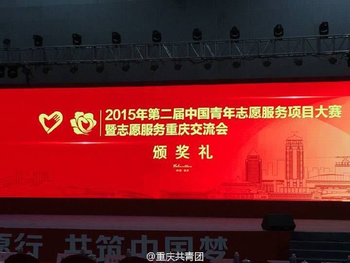 @重庆共青团:伴随着热情洋溢的[围观]中国青年志愿者之歌,2015年第二届中国青年志愿服务项目大赛暨志愿服务重庆交流会颁奖礼正式拉开了帷幕!#重庆志交会#