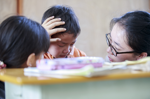 阁楼小学刘云虹为学生心理疏导 程伟光摄