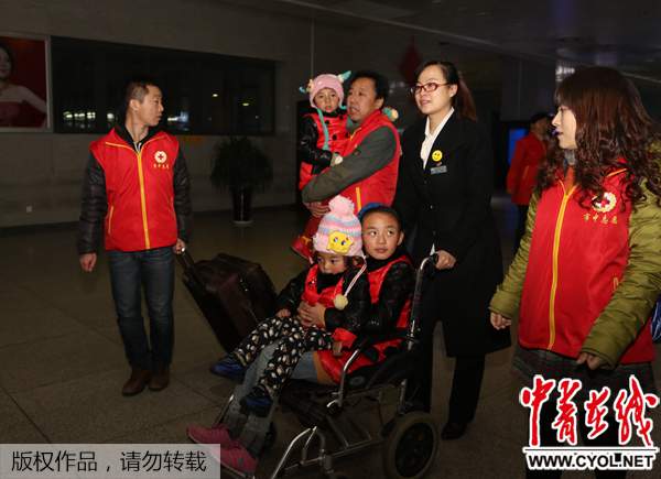 推轮椅,拿行李,按电梯,开车门,很快,孩子们经由车站爱心通道被送到站外的专车上。
