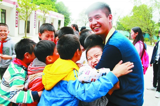 功夫支教结束后西南大学的同学们与重庆市荣昌区昌州碧云完全小学学生依依惜别冯晓敏/摄