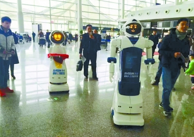 湖南日报2月5日讯(记者 刘勇 通讯员 寇冠乔)“请问坐飞机可以带鸡蛋吗?”“您好,鸡蛋只能随身携带,不能办理托运,总重量不可以超过5千克。”今天,在长沙黄花机场,两位“热情”的机器人,正在忙着回答旅客的疑问。