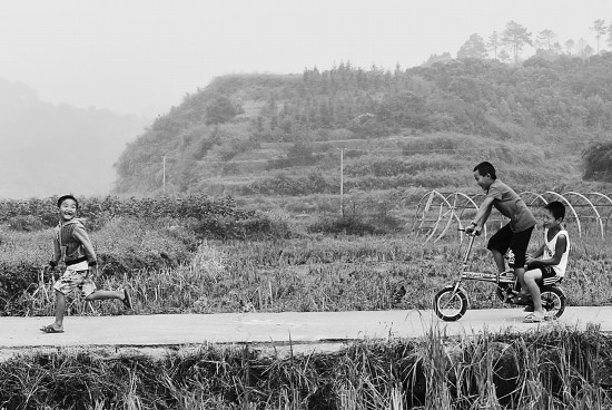湖南怀化,村里的小伙伴在乡间的小路上玩耍。视觉中国供图(资料图片)