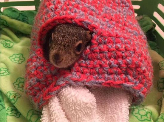 图为美国密西西比州志愿者为松鼠制作的毛线窝。(网页截图)