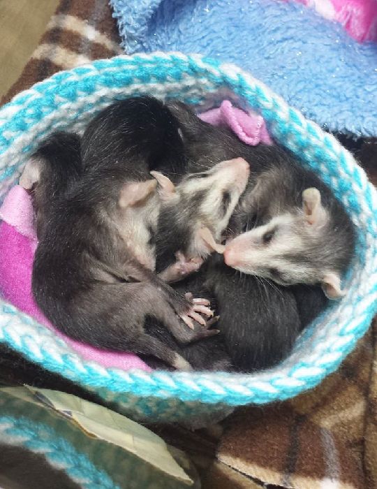 一些志愿者会将编制好的毛线窝寄给凯蒂,图为北美负鼠。(网页截图)