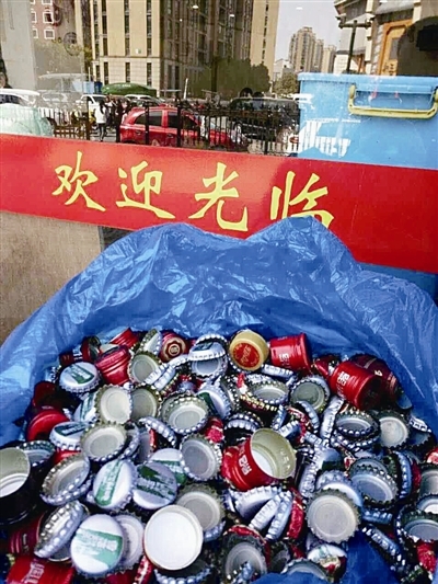 “我曾经把啤酒瓶盖里的皮圈拿出来,烧给她看,告诉她这个东西是埋在地底下很多年都不会降解的,我们不如收集起来,拼成各种图案,可以在幼儿园、咖啡店等地方做装饰品。”梁存建说,现在女儿到饭店里去吃饭,都会留意啤酒瓶盖,把它们收起来带回家。