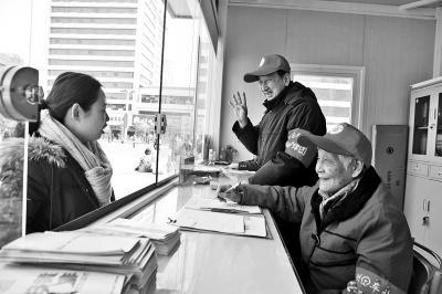 84岁的左春秀和79岁的赵显达耐心帮乘客解答问题