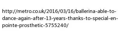 没想到13年以后,她又有机会重新开始穿上芭蕾舞鞋,能够立起脚尖跳舞。她的医生为她打造了一个适合跳舞的新假肢,实现了Mel的梦想。