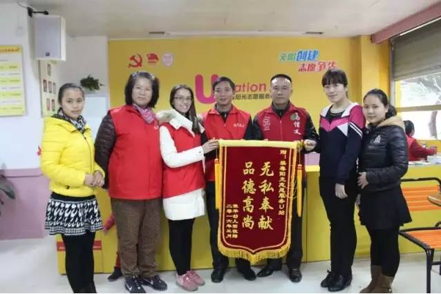3月15日早上10点,佳华幼儿园园长及老师特地将“无私奉献,品德高尚”的锦旗赠送到禁毒阳光志愿服务U站。事发在3月7日早上11点半左右,一个居民带着一个哭喊的小孩来禁毒阳光U站寻求帮助。阳光U站的义工们立即上前了解情况,马上联系了佳华幼儿园园长说明情况,幼儿园老师和小孩的家长及时赶到。义工们看到小孩重回家人的怀抱都觉得十分高兴。