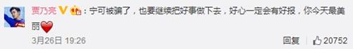 随后,贾乃亮发微博安慰受骗的妻子,称好心有好报,宁可被骗,也要继续把好事做下去。