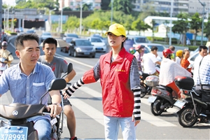 ▲本报志愿者走上街头劝导交通。
