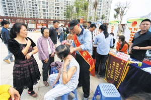 ▲志愿者免费为市民保健按摩。