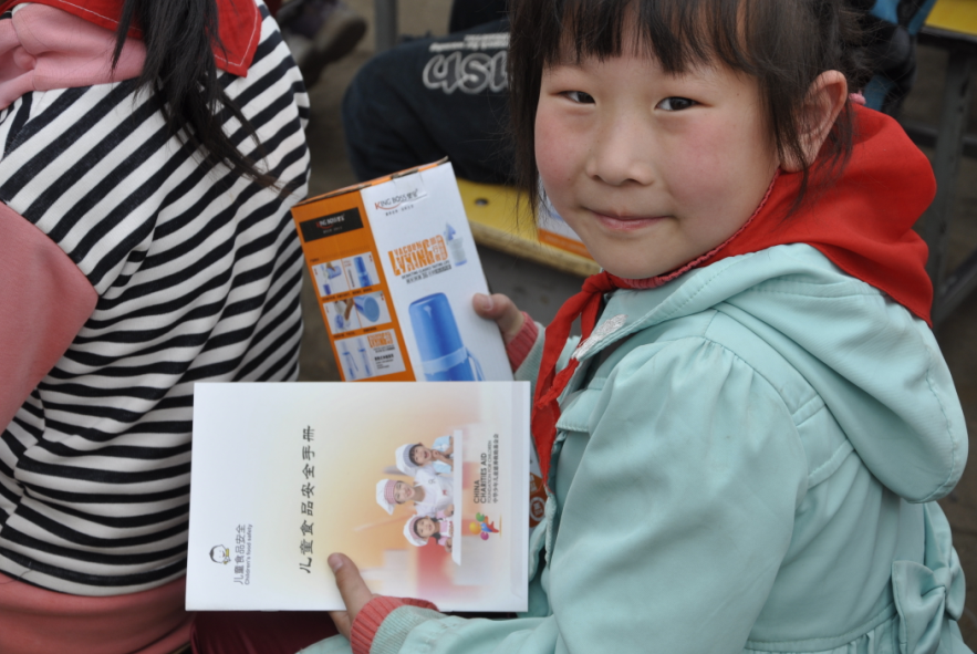 当日,项目组成员又抵达灵寿县燕川第一中心小学,向学校捐赠学生卫生餐具600套,豪华餐具消毒柜2台,并向学生们发放了项目组精心设计制作的儿童食品安全知识手册。此次活动共捐赠物资价值5万余元,大部分来自于北京维深国际文化传媒有限公司赞助和社会各界爱心人士的捐赠。