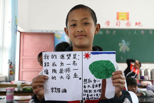 学习完毕,孩子们纷纷为支持新年课的网友写了回音卡,答谢他们的捐赠。之后,他们在纸上写下了自己新学期的愿望和实现计划,希望有一天能够实现。