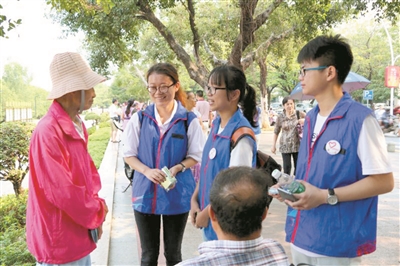 椰影婆娑、碧海蓝天,游客行走在三亚细软的沙滩上,不时会看见一群身穿深蓝色上衣的年轻人,他们有的低头默默清理沙滩上的烟头、纸皮;有的拿着资料宣传册,向市民和游客诉说着关于保护海洋、保护生态的知识……
