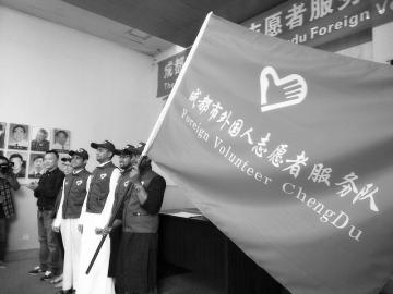 本报讯(记者 钟振宇 文/图)5月4日,成都市首支外国人志愿者服务队在西南交大成立。该志愿者服务队由成都市公安局出入境管理局携手成都团市委志工部和西南交大国际合作与交流处共同组建,首批成员共11人,他们将致力于文化交流、涉外法律法规宣传等志愿服务。