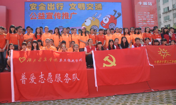 【十堰】为迎接五四青年节的到来,倡导安全出行,宣传文明交通理念,使文明交通的理念在更大范围内得以传播,让更多的人学习文明交通知识,提高文明交通意识。十堰市小草义工协会和湖北医药学院普爱志愿者志愿服务队联合开展了“安全出行文明交通”的宣传条幅上签名活动,倡议广大市民文明出行,保障他人及自身的交通安全。在活动现场,十堰市小草义工协会和湖北医药学院普爱志愿服务队的青年志愿者们不仅组成方阵参加签字仪式,还向观众派发了文明交通宣传册。