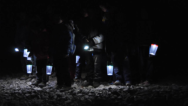 云南鲁甸的上学路上,孩子们提着太阳能灯上学,不再摸黑。