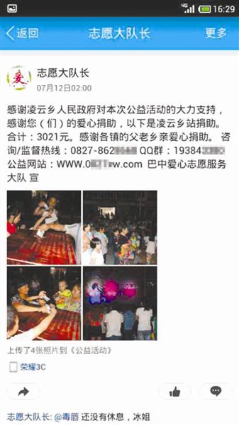 募捐活动从2015年6月前后正式开始,7月底结束。前日,成都商报记者前往“巴中爱心志愿服务大队”曾去过的多个乡镇进行了调查。