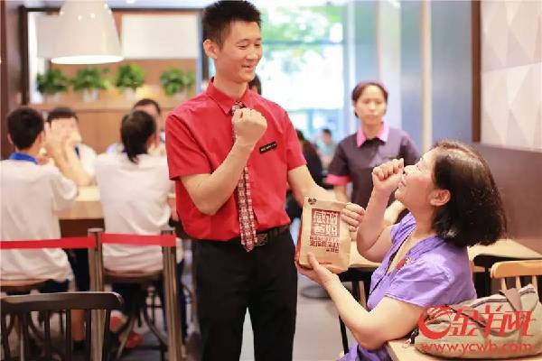 现年42岁的曾晓云,是一名听障人士。在天使餐厅,他甚至比部分普通员工更资深:入职肯德基14年,他熟悉餐厅里的每一个岗位,能对其他的天使员工进行直接的沟通指导。就在前不久他还被升迁为组长。“在这里工作,我感到很开心。”曾晓云称,相比到肯德基之前的两份工作,他觉得最大的不同是整体环境,“同事是健全的,顾客也是健全的,我可以和普通人一样工作。”