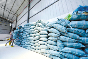 企业人员对“大白桶”收集的衣服进行整理。