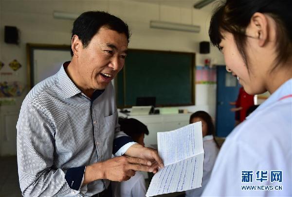 5月17日,许朝垠在和听障儿童交流。今年59岁的许朝垠是安徽省全椒县特殊教育学校校长。全椒县特殊教育学校集听障教育、培智教育和学龄前残疾儿童康复训练为一体,学校里的孩子有的智力发展缓慢,有的言语功能或听力存在障碍。许朝垠表示:“家长把孩子交到我手里,我就要让他们放心,努力营造好的环境,用爱陪伴孩子,让他们快乐成长。” 为实践这一句“用爱陪伴”,许朝垠像父亲一样对孩子们的生活起居、日常学习都悉心照料,无微不至;还组织过数次家访活动,了解学生情况,为此走过全市各县区超过20个乡镇。在许朝垠和各位老师的努力下,学校里已经有大量听力和语言功能障碍儿童能够较好地听和说,可以接受正常教育;很多智力发育缺陷儿童也提高了生活自理能力和交流能力,回归家庭。2013年8月,许朝垠入选“中国好人榜”。新华社记者刘军喜 摄