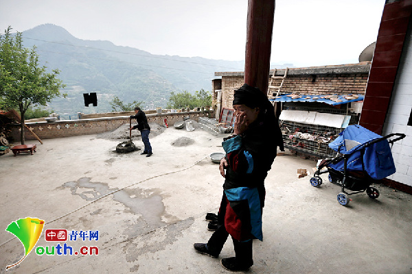 清晨,黄三英在自家的院中干活。他说:“我想给学校修个卫生间,最多一万块钱。”中国青年网记者 张炎良 摄