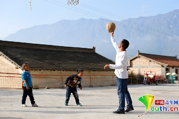 清晨,黄三英早早地来到学校前的空地,陪孩子们打球、玩耍。“最快乐的事儿就是到了学校,和孩子们在一起。”黄三英说。中国青年网记者张炎良 摄