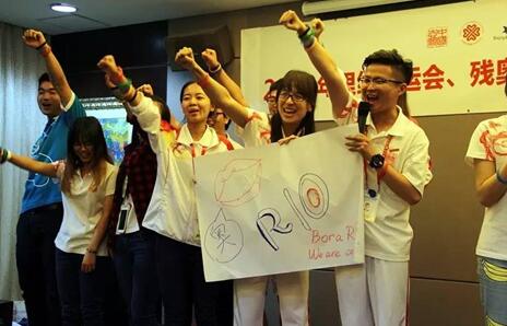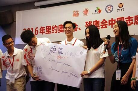 当晚,志愿者组织破冰游戏,设计了各小组的口号和标语,分别将队伍命名为“奥RIO”“央视不带V”“永敢的心”“里约颜值代表队”“BLUE”。