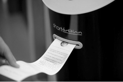为了培养市民的阅读习惯,充分利用零碎时间,法国Grenoble市政府和出版社共同策划了一个公益项目:在车站、餐厅等公共场所放置短篇小说售卖机,即右图中的机器。这种机器由一家名为shortedition的出版商推出,目前已经摆放了八台设备,分布在旅游局、图书馆、社区中心等公共场所。