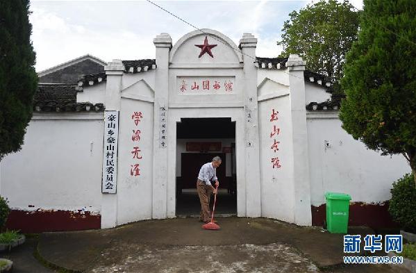豪山图书馆前身是“文阁书院”,200多年前由本村段氏兄弟捐建。新中国成立后,这里曾用作小学、医院、供销社等单位的办公场所。豪山图书馆管理员段达德在图书馆前打扫卫生(6月14日摄)。新华社记者李尕 摄