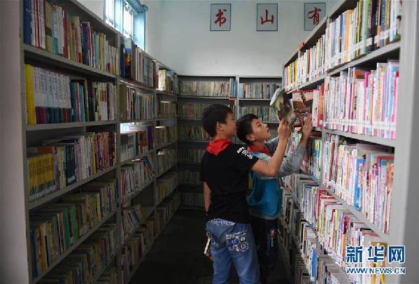 图书馆成立之初,八位图书馆创始人轮流义务值班,每人在图书馆上班一周,被豪山村民们誉为“豪山八贤”。后来,随着图书馆的影响越来越大,不少读者也自觉加入到管理员队伍,大家轮流来管理。豪山村的孩子们放学后在豪山图书馆里挑选书籍(6月14日摄)。新华社记者李尕 摄