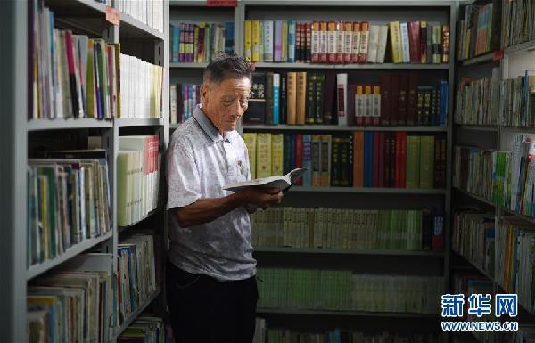 作为八位创始人之一,95岁高龄的段纯老人仍生活在豪山村,据他介绍,自图书馆创办以来,村里年年都有人考上重点大学。豪山图书馆创始人之一段纯在图书馆里检查书籍(6月14日摄)。新华社记者李尕 摄