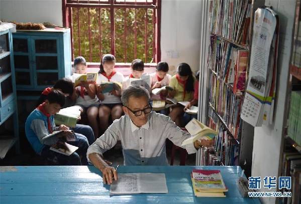 他觉得每天最快乐的事,就是放学后孩子们走进图书馆来到登记台前,将选好的图书递到他手中,他在登记本上一行行记录下孩子的姓名和书名,记录下孩子们的阅读与成长。豪山村的孩子们放学后在豪山图书馆里挑选书籍(6月14日摄)。新华社记者李尕 摄