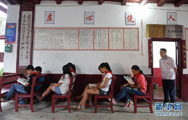 1985年,当时的豪山村小教师段祖惕联合退休教师段纯等八位豪山乡贤,向社会各界筹集资金、募捐书籍并修缮院宅,创办了豪山图书馆。在图书馆创立的当年,藏书就接近1万册。豪山村的孩子们放学后在豪山图书馆里挑选书籍(6月14日摄)。新华社记者李尕 摄