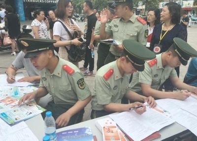 近日,沃尔玛广场上来自双桥街道石桥社区的志愿者们正在踊跃参加无偿献血活动,石桥社区联合共建单位扬州市边检站的官兵开展无偿献血。在部队官兵的感召下,许多石桥社区的居民也纷纷加入到献血的行列中来。