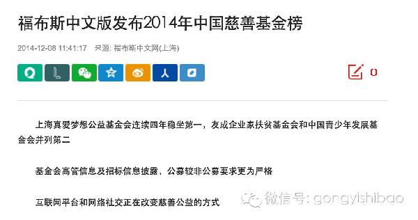 真爱梦想基金会连续四年稳坐《福布斯》“中国慈善基金榜”榜首