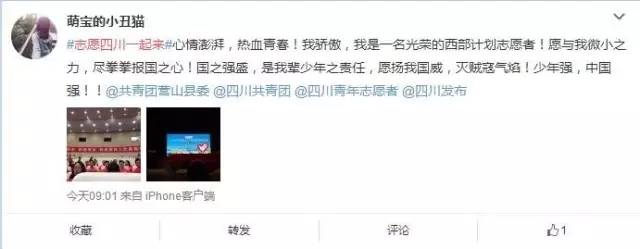 #志愿四川一起来#心情澎湃,热血青春!我骄傲,我是一名光荣的西部计划志愿者!愿与我微小之力,尽拳拳报国之心!