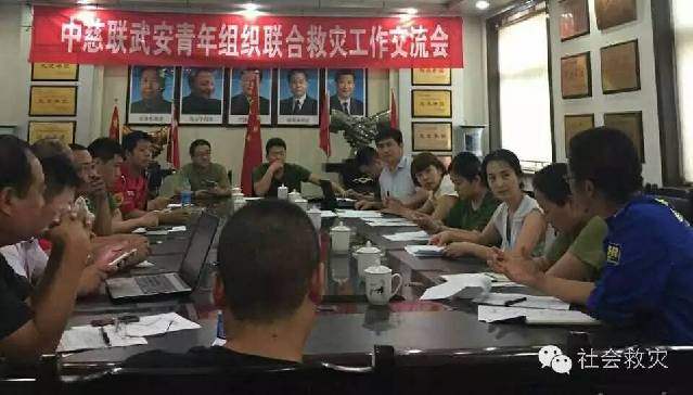 中慈联救灾委、中灾协震救委在共青团邯郸市委员会、共青团武安市委员会、武安市民政局、民进武安总支等单位的支持下建立武安市青年组织联合救灾服务站,并于2016年7月24日下午15:30在武安市安监局二楼会议室召开武安市青年组织联合救灾交流会。