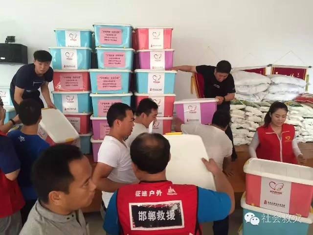 邯郸户外救援队完成在永年县搜救工作后,协调本地社会资源,在永年、涉县2个县发放紧急救灾物资,24日出动41人为义井镇、徘徊镇运送4车救灾物资。
