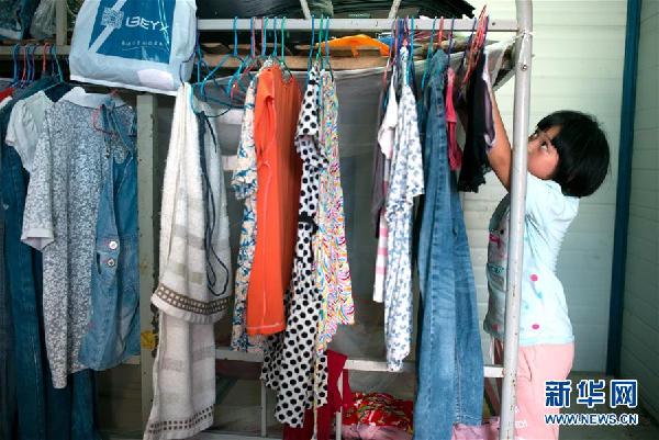 安徽省合肥市瑶海区和平路街道一处工地宿舍内,来自浙江台州的“小候鸟”、10岁的王佳楠帮着父母整理房间里的衣物(7月28日摄)。王佳楠平日里和妈妈一起生活,暑期来到合肥看望在工地工作的爸爸。新华社记者郭晨摄