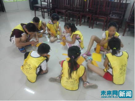 余杰和同学们做手工品。