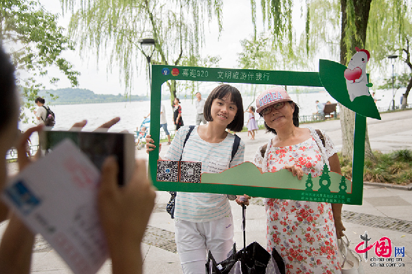 8月3日,游客在西湖湖畔留影。中国网记者 张若梦 摄