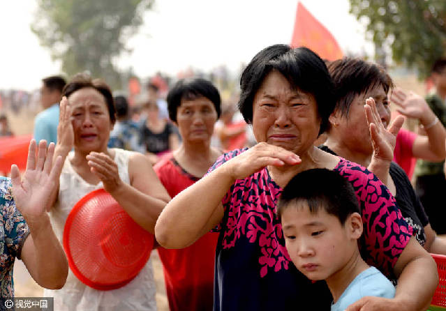 2016年8月4日,河北邢台,抗洪官兵撤离,百姓洒泪挥别。 图片作者:冰咖啡/视觉中国