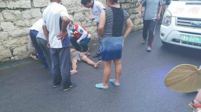 8月14日,一名巴中男子在山东济南摔伤。图为急救现场。