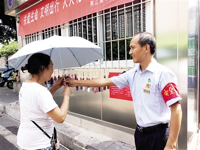 “孃孃,你把这把伞带上车吧。天气热,打把伞遮太阳。”驾驶员侯世鹏见有乘客在调度室外看告示,就主动为乘客挑选了一把防晒伞。